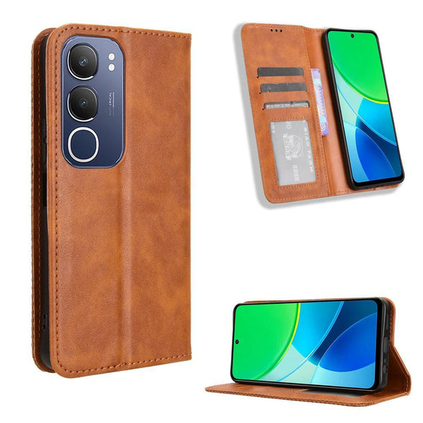 For vivo Y19s 4G Magnetic Buckle Retro Texture Leather Phone Case(Brown)