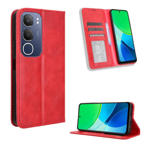 For vivo Y19s 4G Magnetic Buckle Retro Texture Leather Phone Case(Red)