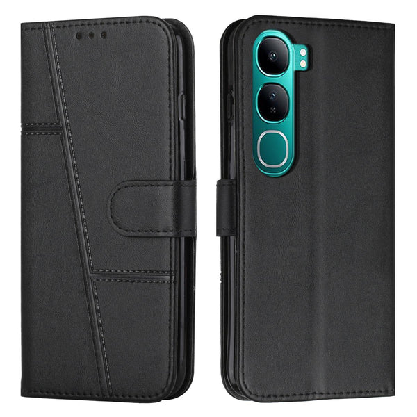 For vivo Y300 Global / V40 Lite IDN Stitching Calf Texture Buckle Leather Phone Case(Black)