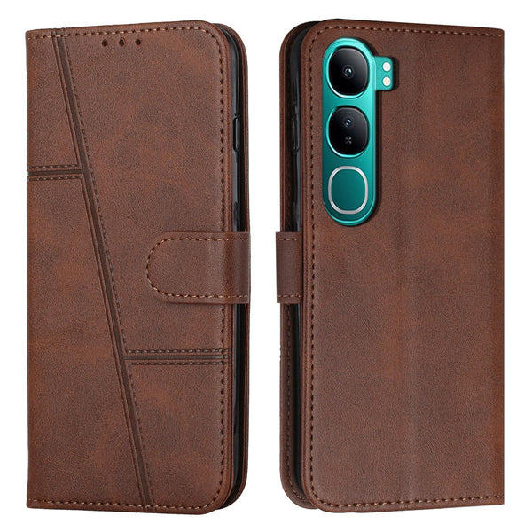For vivo Y300 Global / V40 Lite IDN Stitching Calf Texture Buckle Leather Phone Case(Brown)
