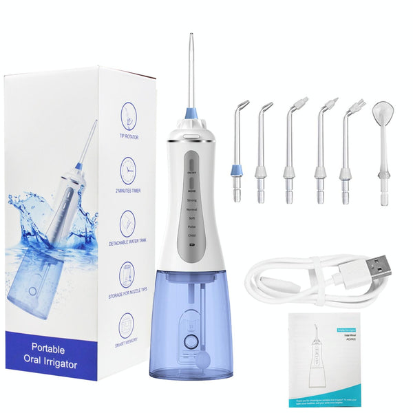 350ML Water Tank Oral Irrigator Rechargeable 5 Gear Adustable Water Flosser, Spec: White+Blue Tank
