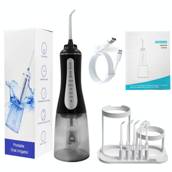 350ML Water Tank Oral Irrigator Rechargeable 5 Gear Adustable Water Flosser, Spec: WithBracket Black