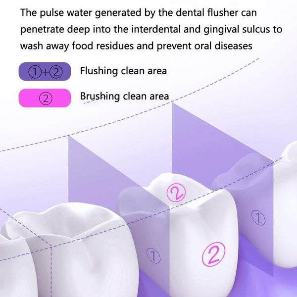 3. The pulse water generated by the dental flusher can penetrate deep into the interdental and gingival sulcus to wash away food residues and prevent oral diseases