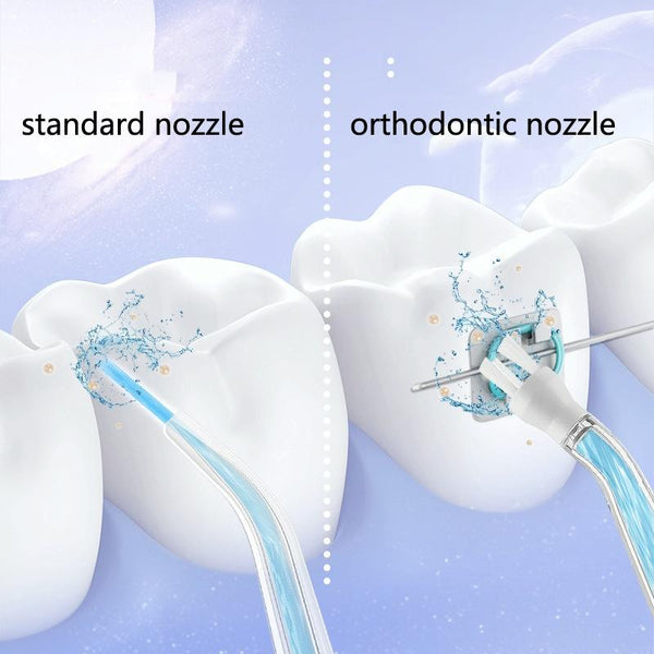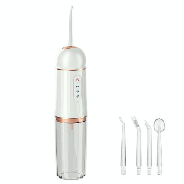 A9 Household Electric Portable Tooth Cleaner Oral Care Dental Floss Tooth Cleane 4 Nozzle(White Gold)