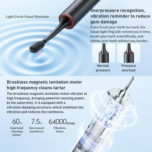3. Brushless magnetic levitation motor with high-frequency cleaning of tartar and reduced hand fatigue