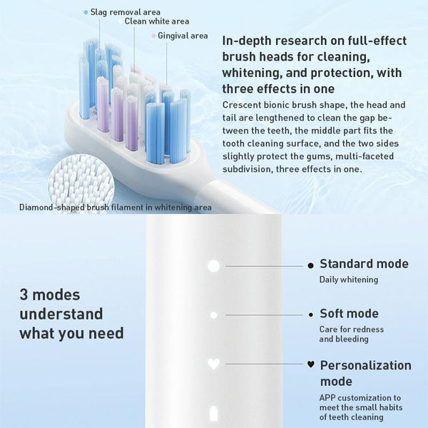 4. Three modes for daily whitening and cleaning, care for swollen and bleeding areas, and personalized custom mode