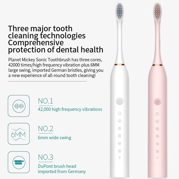 1. IPX7 waterproof, 42,000 vibrations/minute frequency, 6mm vibration sound wave, selected materials for the bristles to ensure safe and harmless inlet