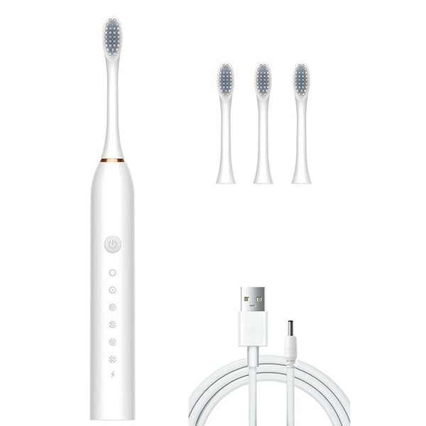 Rechargeable Ultrasonic Soft Bristle Electrical Toothbrushes Flosser 6 Gear With 4 Brushes(White)