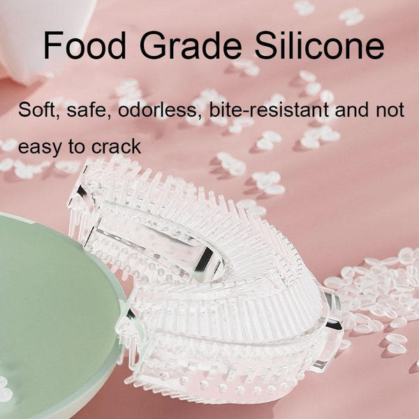S8 2pcs Children Cartoon Animal Manual U-shaped Silicone Toothbrush for 2-12 Years Old(Green Tiger)