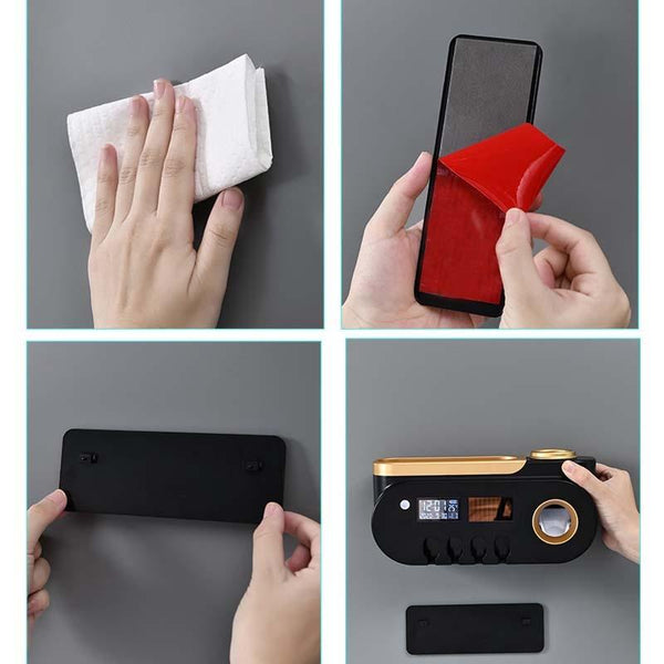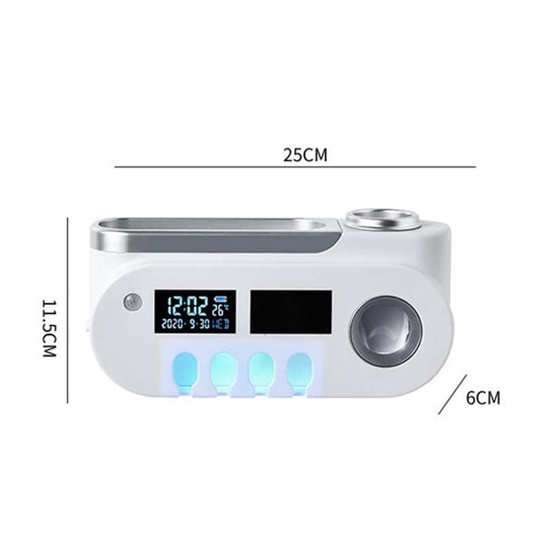 13. Features: UV sterilization, light energy charging, intelligent stop sterilization, storage for storage, no perforation installation, automatic toothpaste squeezing
