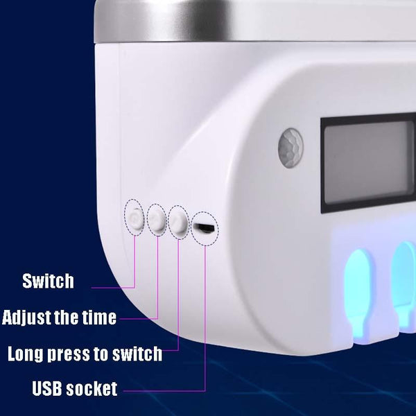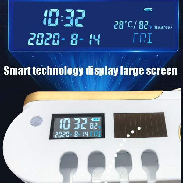 13. Features: UV sterilization, light energy charging, intelligent stop sterilization, storage for storage, no perforation installation, automatic toothpaste squeezing