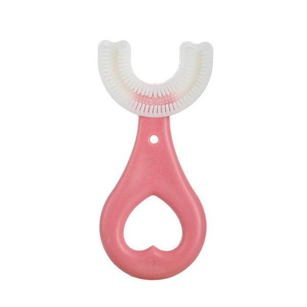 U-shaped Children Baby Hand-held Soft Toothbrush Brushing Artifact for 2-6 Years Old, Style: Heart Shape(Pink)