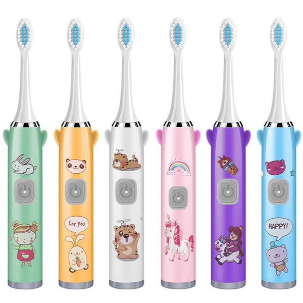 USB Charging Fully Automatic Ultrasonic Cartoon Children Electric Toothbrush, Color: White with 6 Heads