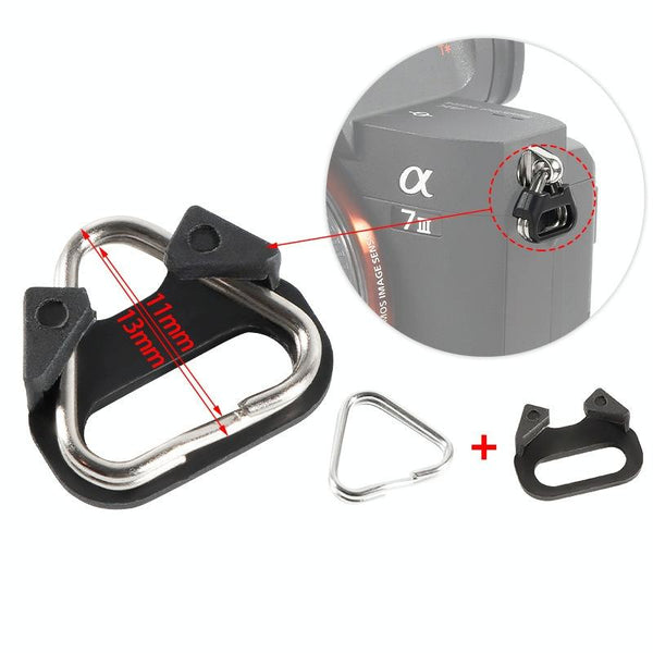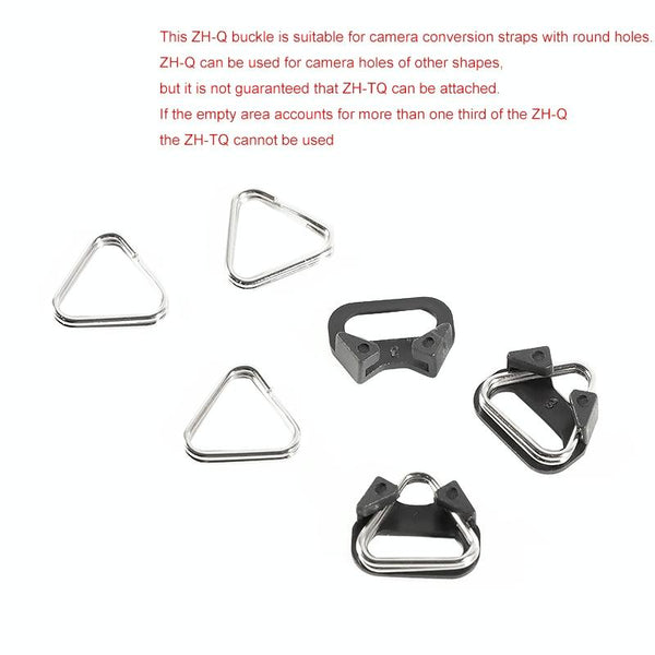 Note: The triangle ring is suitable for the strap hole for camera strap with round hole. If the hole area is more than one third of the triangle ring, it cannot be installed.