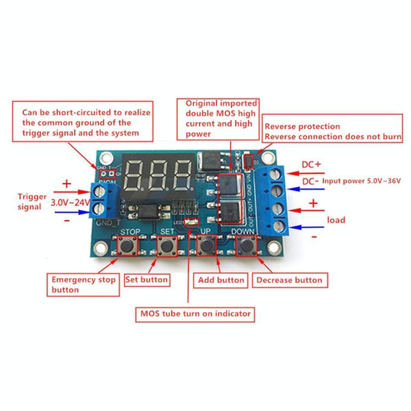 7. Note: The module is an active live output, the voltage of the output terminal (load terminal) is equal to the input terminal voltage (DC 5V--36V)