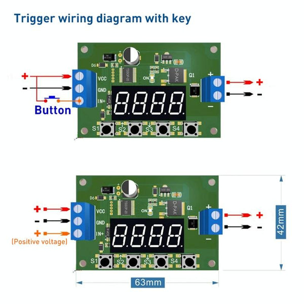 2. Trigger terminal voltage: DC 3.3~30V (can also be triggered by button)