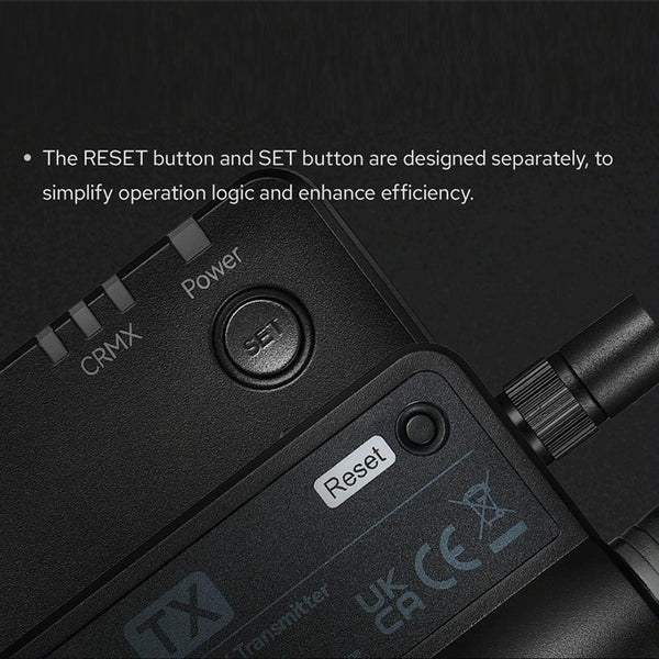 1. Automatic Frequency Hopping: Supporting automatic frequency hopping, TimoLink TX & TimoLink RX always ensure stable CRMX signals within 300m even in extremely complex situations on set.