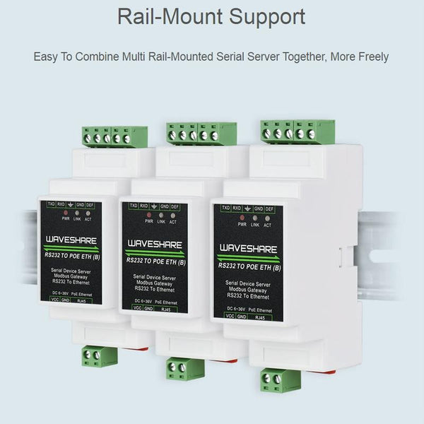 Waveshare 23951 Industrial Serial Server RS232 to RJ45 Ethernet TCP/IP to Serial with POE