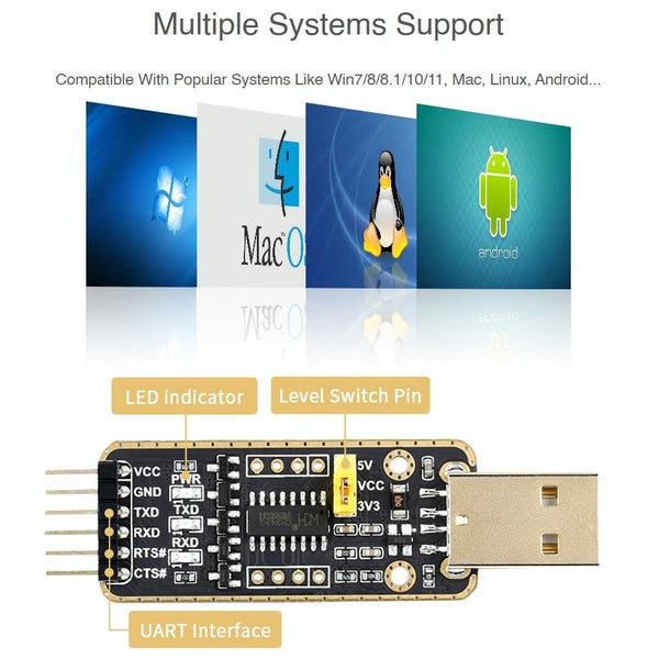 5. Onboard 3.3V and 5V TTL level switch pins for selecting TTL communication level