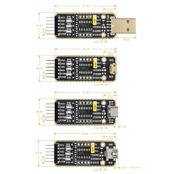 Waveshare USB-Ato UART High Band Rate Transmission Module Connectors