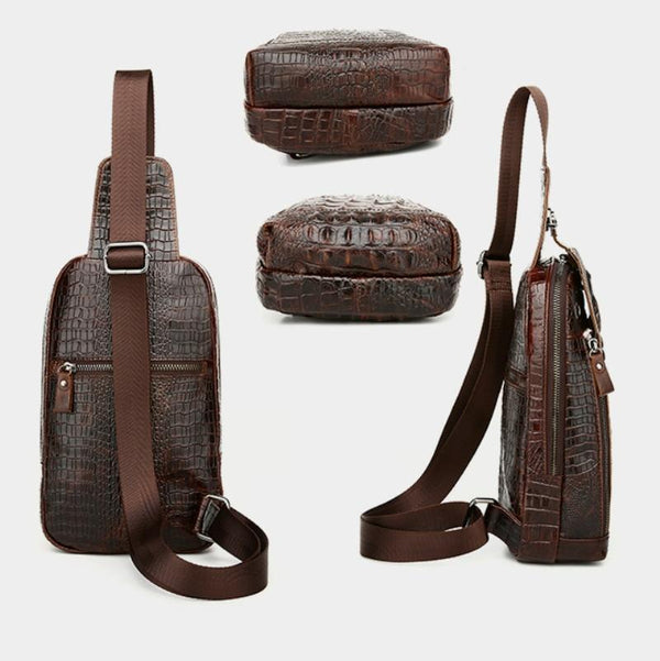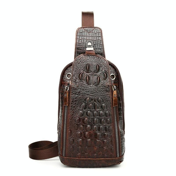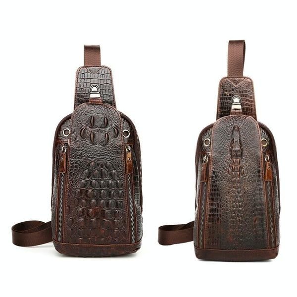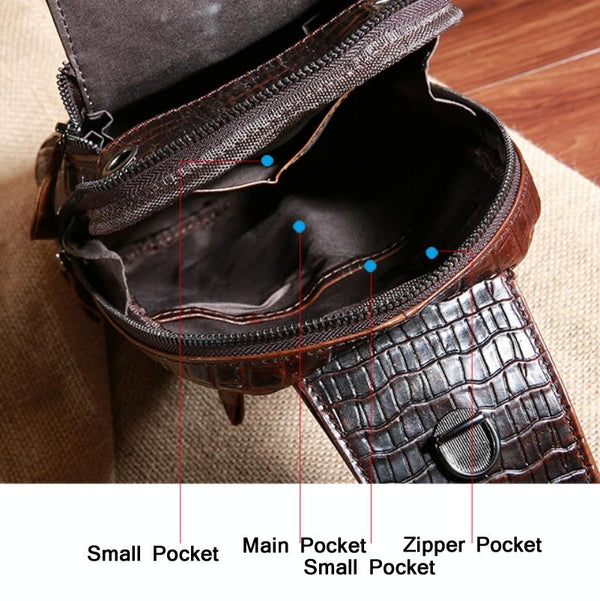 1313 Men Fashion Cowhide Crocodile Texture One-Shoulder Crossbody Chest Bag(Crocodile Pattern)