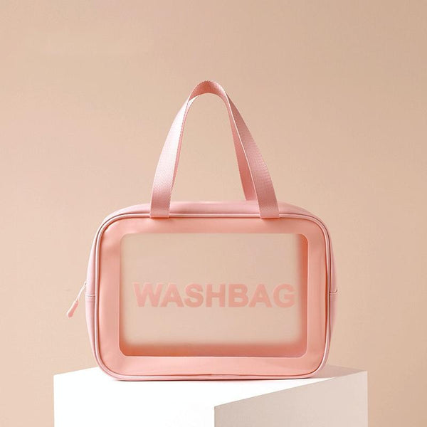 2 PCS Frosted Translucent Waterproof Storage Bag Cosmetic Bag Swimming Bag Wash Bag Pink L