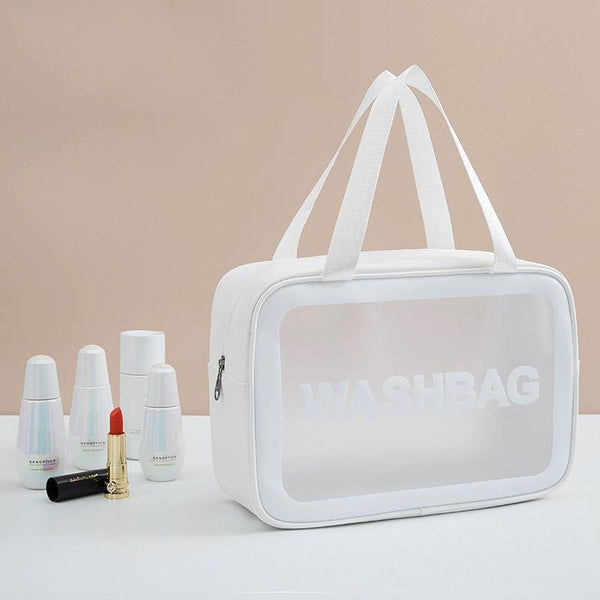 2 PCS Frosted Translucent Waterproof Storage Bag Cosmetic Bag Swimming Bag Wash Bag White L