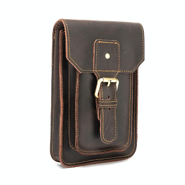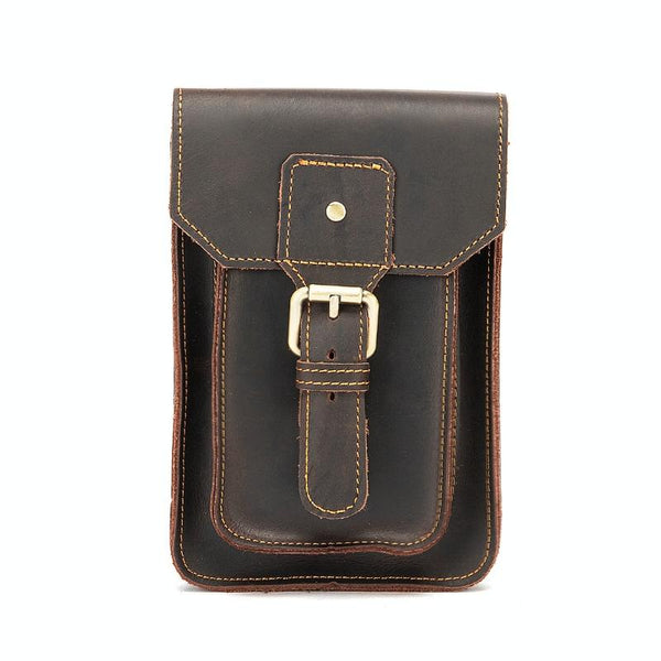 2034 Men Retro Leather Phone Waist Bag(Dark Brown)