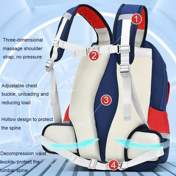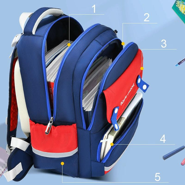 3862 Multi-compartment Ridge Protection Lightweight Waterproof Kids Schoolbag, Size: S (Royal Blue Red)