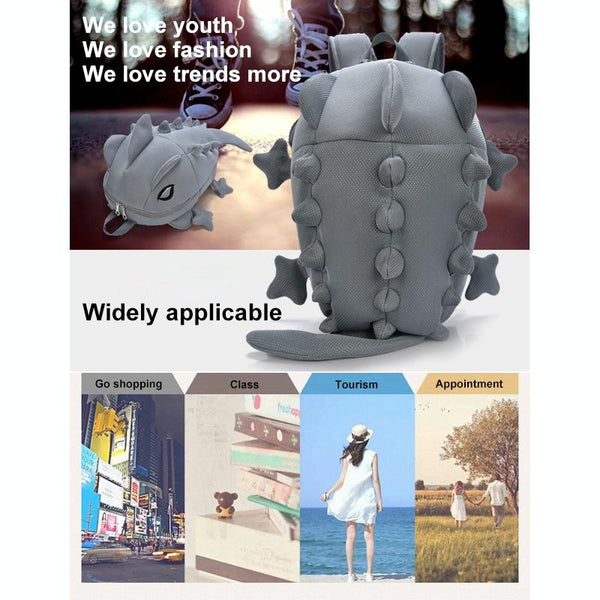 3D Animal Backpack Dinosaur Shape Cartoon School Bags Teenager Schoolbag(Gery)