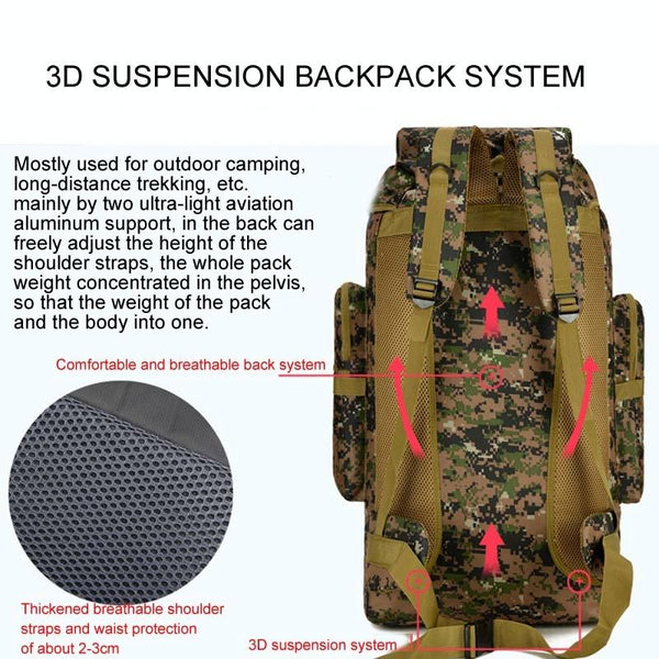 56-75L Large Capacity Travel Hiking Bag Waterproof and Scratch-resistant Backpack(Jungle Camouflage)