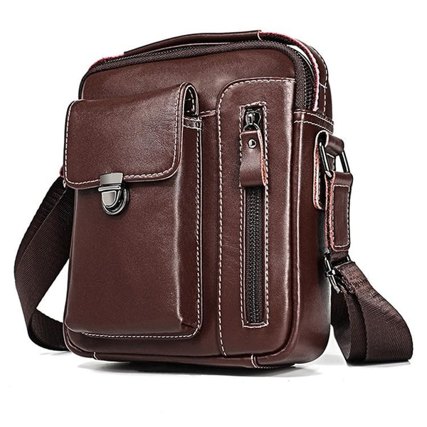 6029 Multifunctional Fashion Top-grain Leather Messenger Bag Casual Men Shoulder Bag (Coffee)