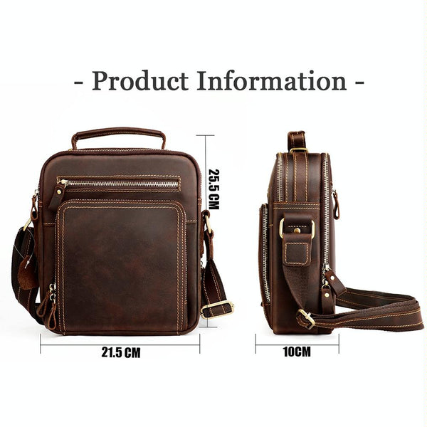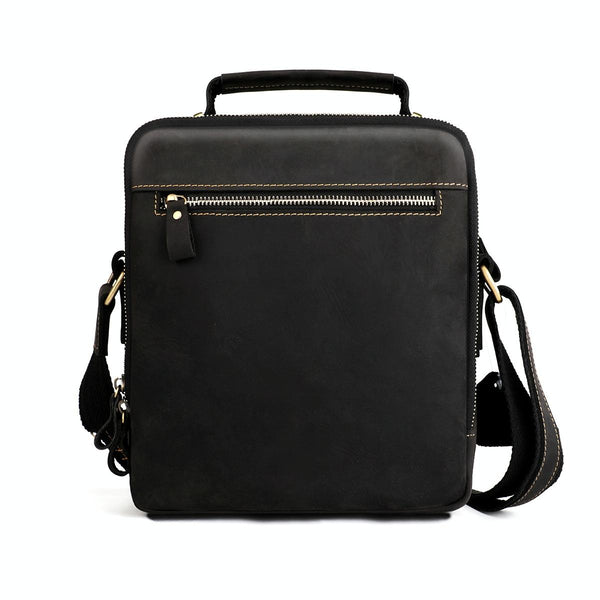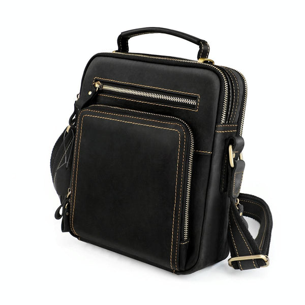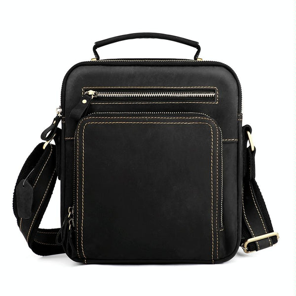 6050 Crazy Horse Texture Genuine Leather Crossbody Bag for Men(Black)