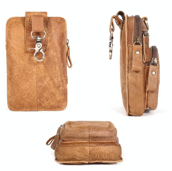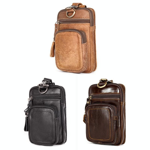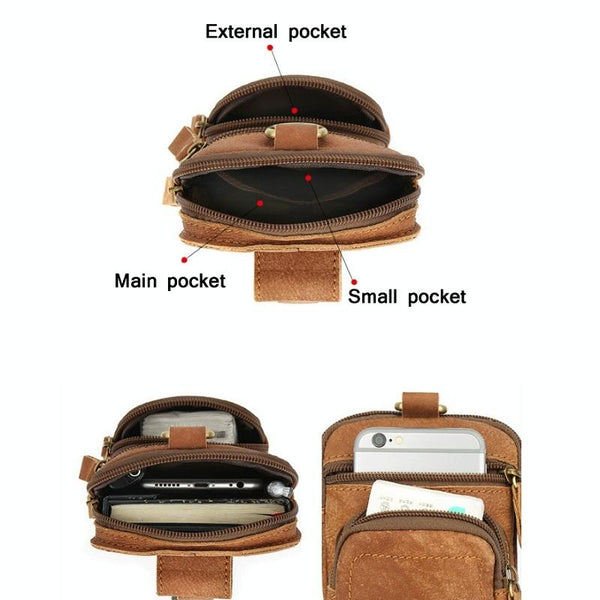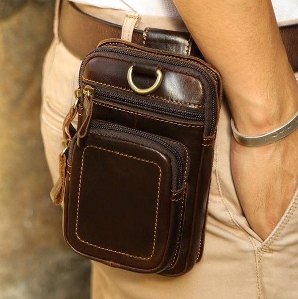 6386 Men Retro Cowhide Multifunctional Sports Belt Waist Bag(Coffee)