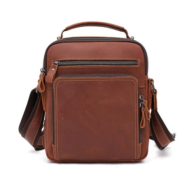 6479 Men Casual Large-Capacity One-Shoulder Messenger Leather Bag(Crazy Horse Texture Red Brown)