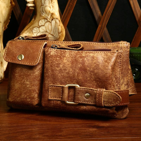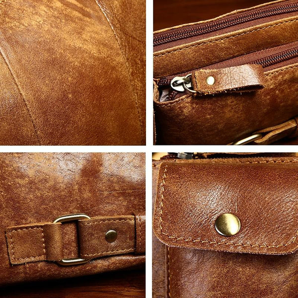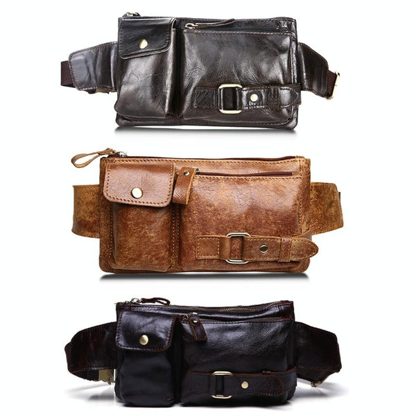 8135 Men Outdoor Sports Multifunctional Cowhide Leather Waist Bag(Matte Brown)
