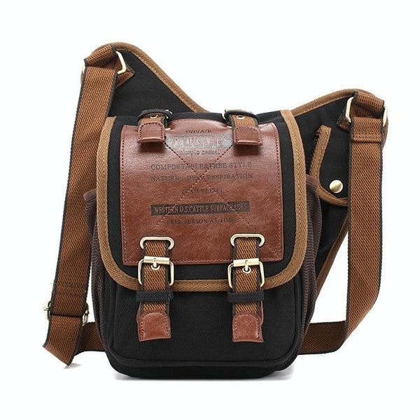 AUGUR 2136 Men Multi-function Retro Canvas Knight Bag Shoulder Messenger Crossby Bag (Black)