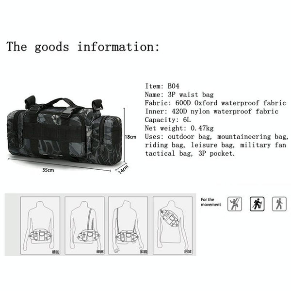 1. Material: 600D Oxford waterproof fabric +210D nylon waterproof fabric
