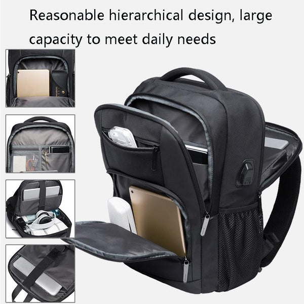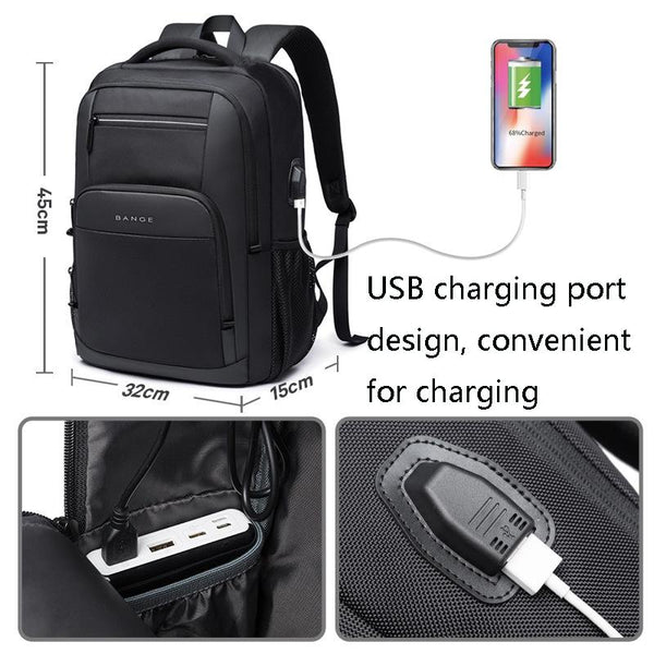 BANGE BG-1921 College Student Schoolbag Waterproof Business Computer Backpack with External USB Charging Port(Blue)