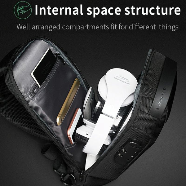 Bange BG-22085 Men Oxford Cloth Waterproof Anti-theft Crossbody Chest Bag, Size: 34 x 18 x 10cm(Black)