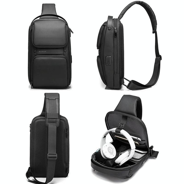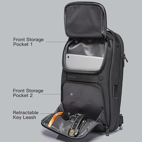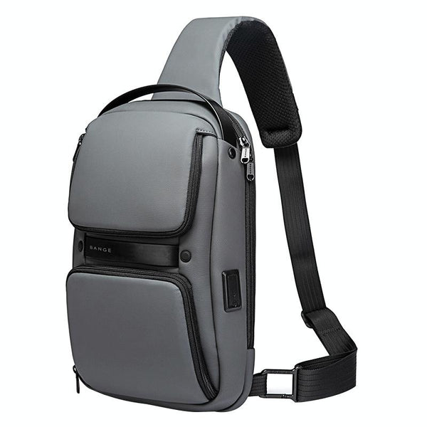 Bange BG-7258 Men Oxford Cloth Waterproof Crossbody Chest Bag with USB Port, Size: 35 x 21 x 12cm(Grey)