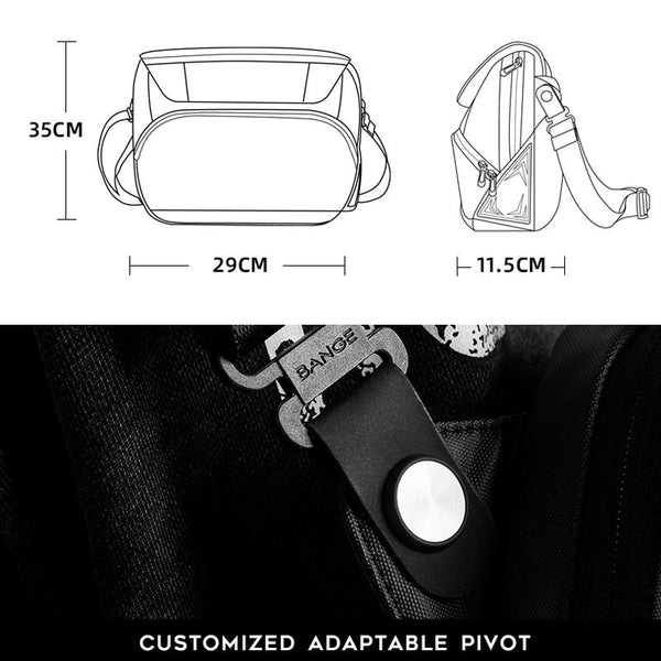 BANGE BG-7628 Men Messenger Bag Fashion Large Capacity Single Shoulder Bag Business Commuter Mail Bag(Black)