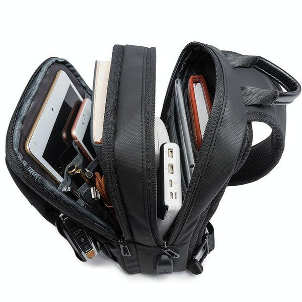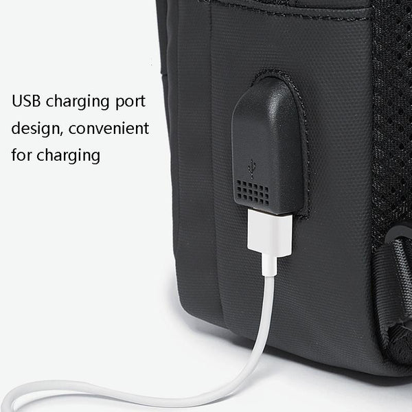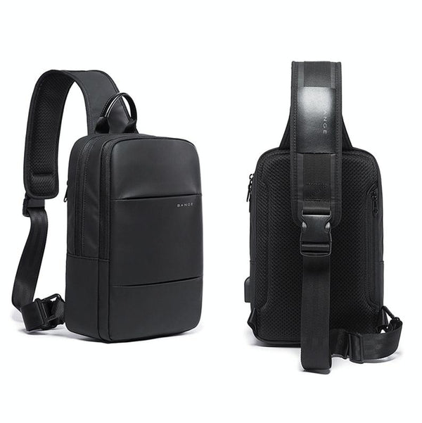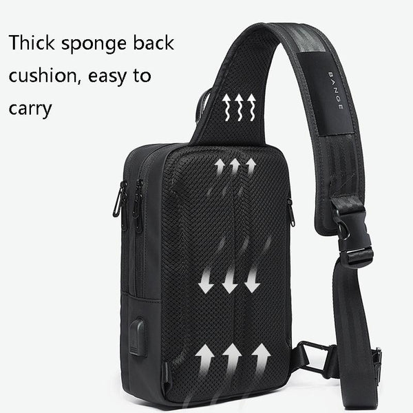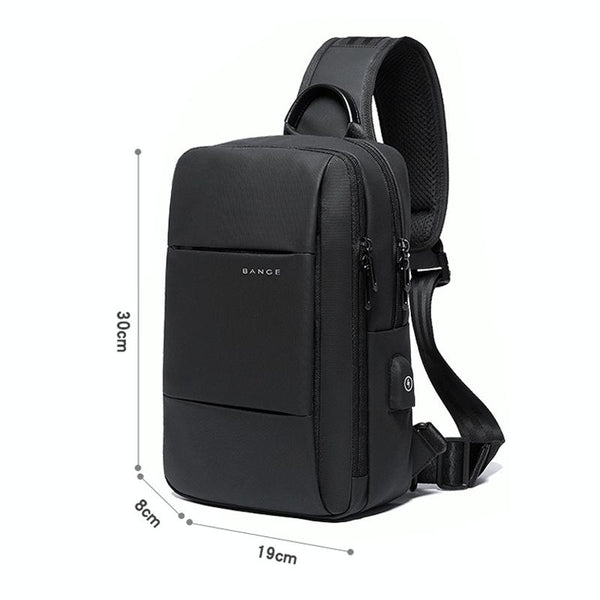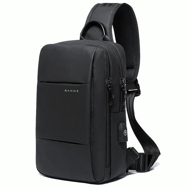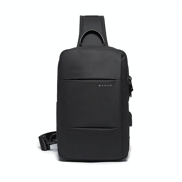 BANGE BG-77107 Men One-Shoulder Bag Casual Simple Messenger Bag with External USB Charging Port(Black)