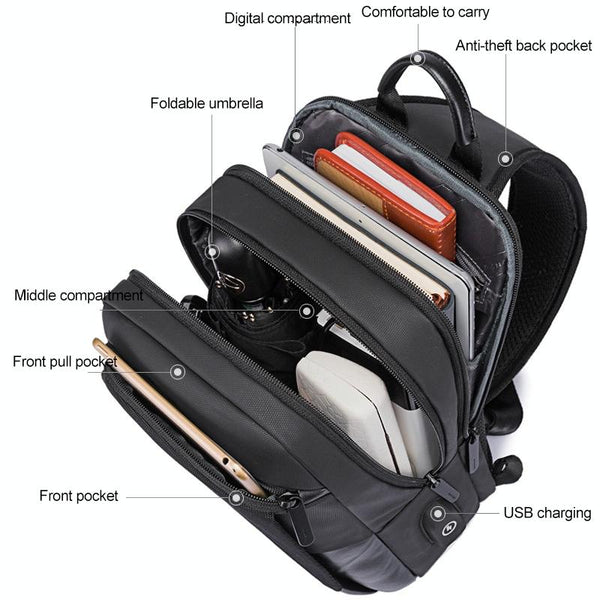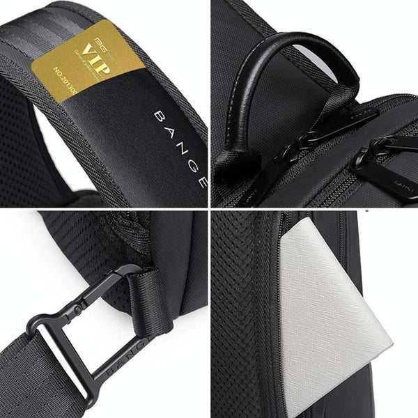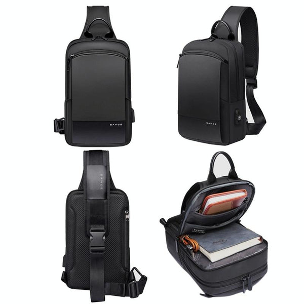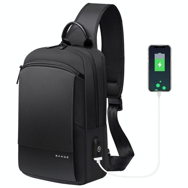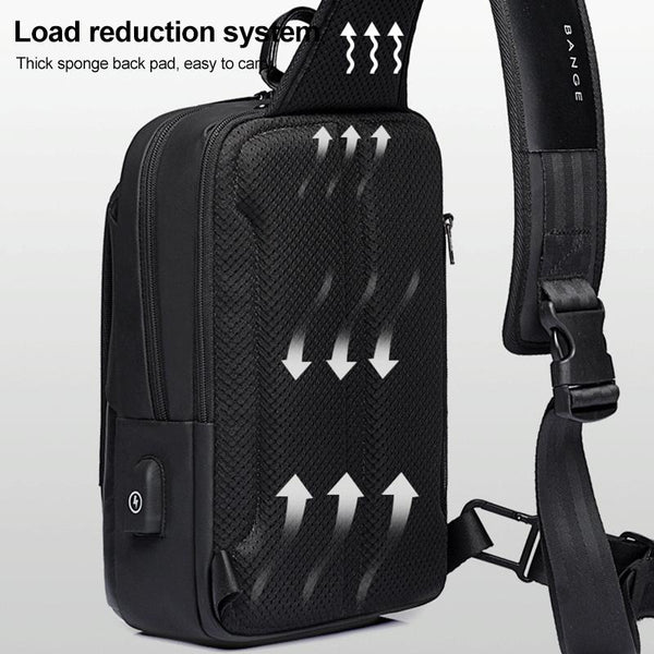 Bange BG-77112 Men Oxford Cloth Waterproof Crossbody Chest Bag with USB Port, Size: 30 x 19 x 13cm (Black)