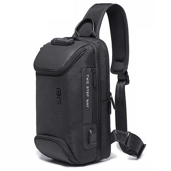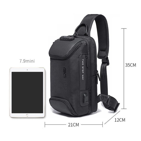 BANGE Men Security USB Chest Bag Portable Outdoor Shoulder Bag(Black)