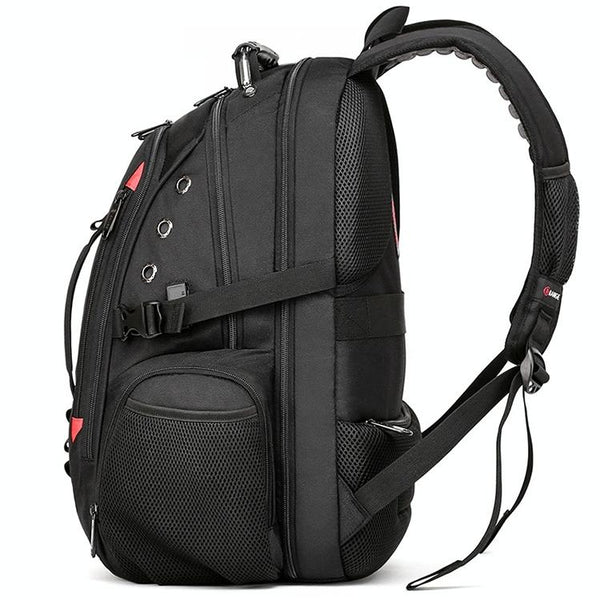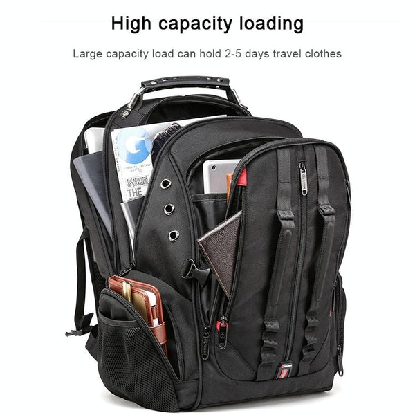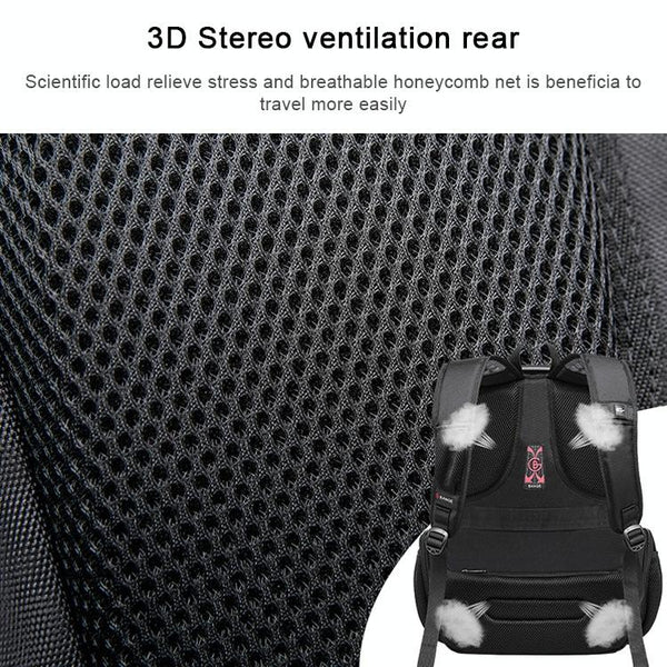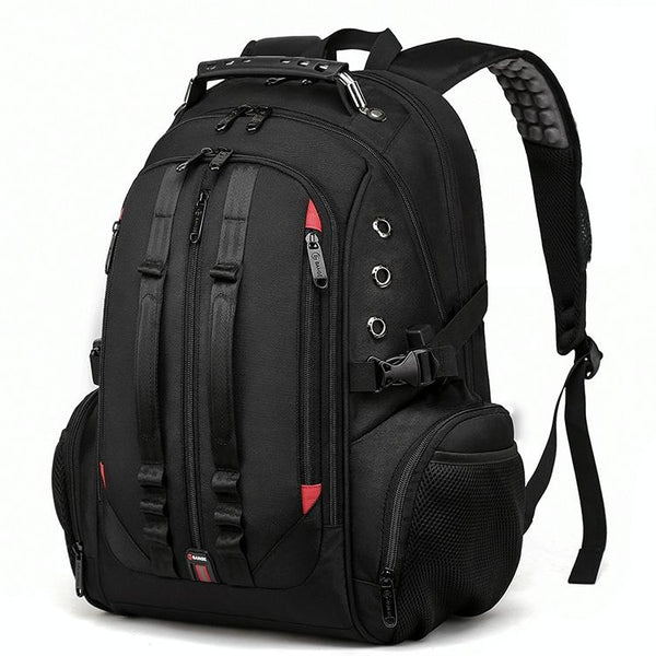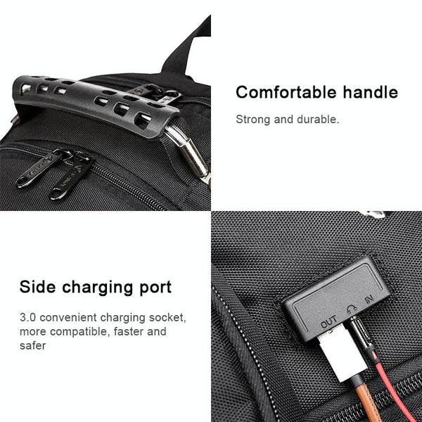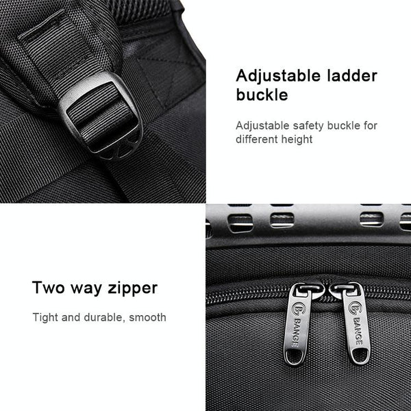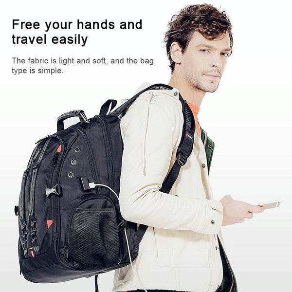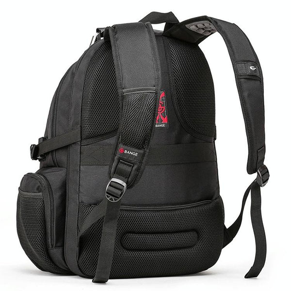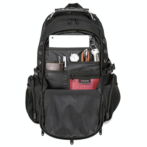 BANGE Waterproof Travel Men Backpack Rechargeable Large Capacity Shoulders Bag with Earplug Hole (Black)