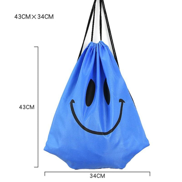 Beach Fitness Swimming Drawstring Waterproof Bag(Blue Smiley Face)
