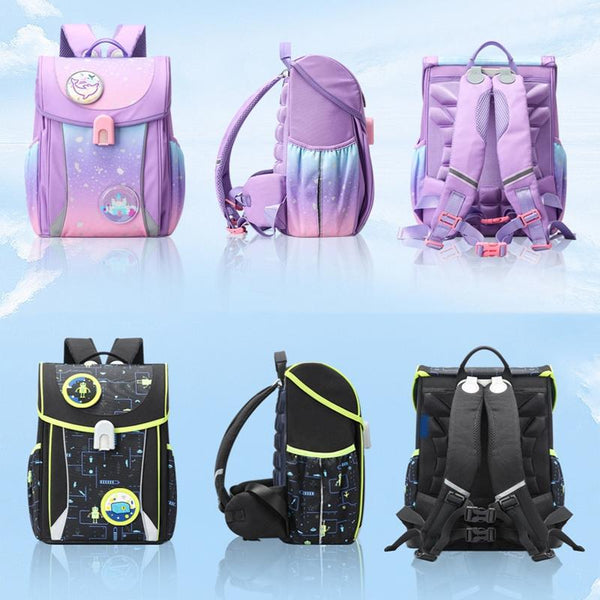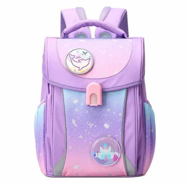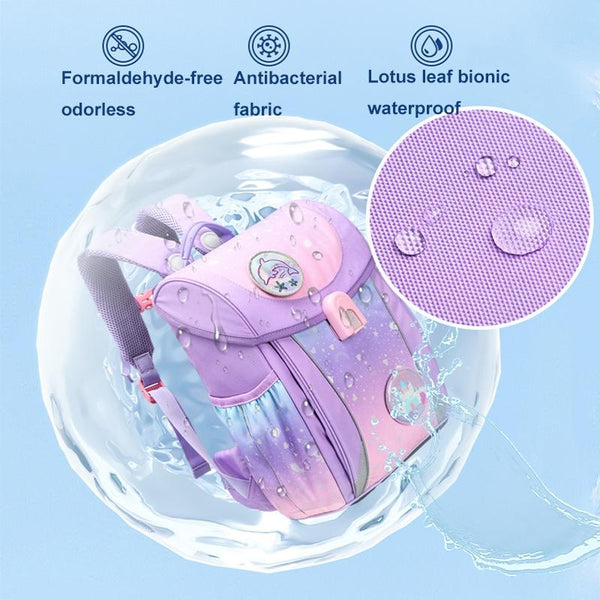 Bopai 66-0162 Large-capacity Cartoon Burden-reducing Waterproof Student Schoolbag(Light Purple)