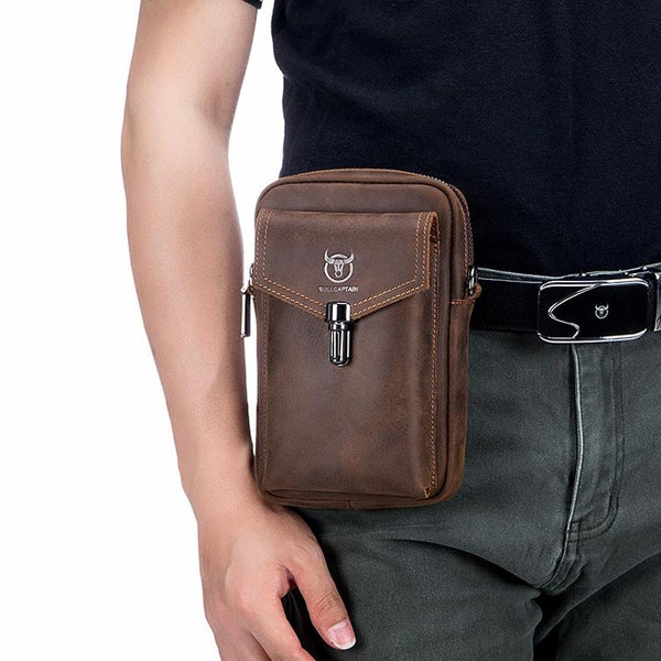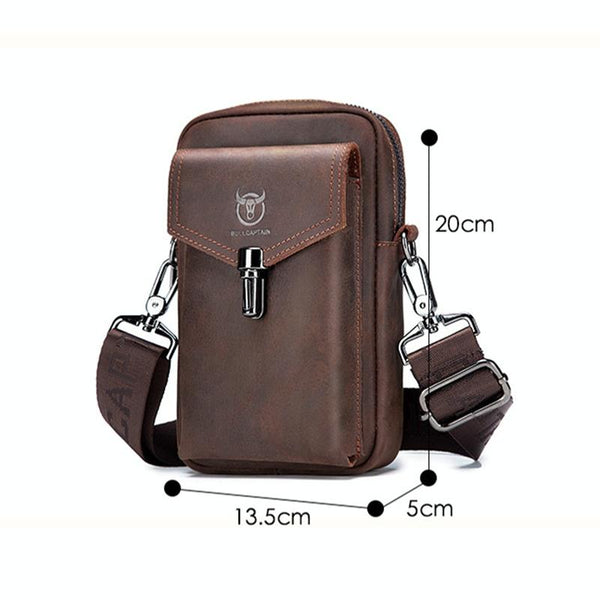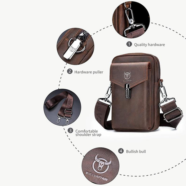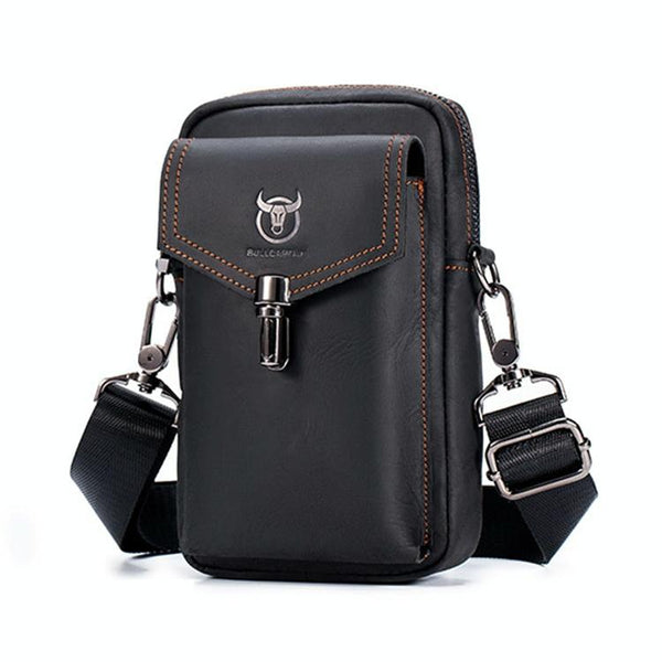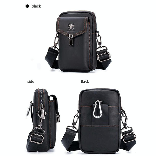 BULL CAPTAIN 076 Retro Leather Mobile Phone Waist Bag Men Leather Messenger Bag(Black)