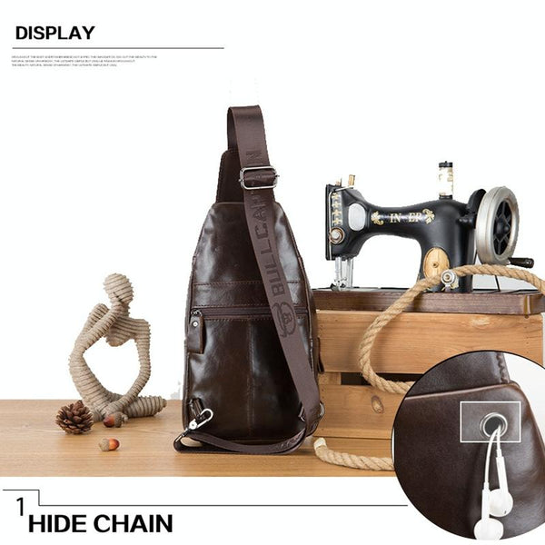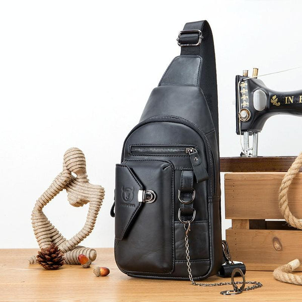 BULL CAPTAIN 520 Large-capacity Cowhide Waterproof Chest Bag with Phone Holder(Black)